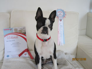 Emmi als stolze Ausstellungsteilnehmerin |
